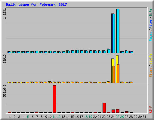 | Day | Hits | Files | Pages | Visits | Sites | kB F | ||||||