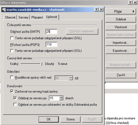 Nastavení klienta (Outlook Express a další) elektronické pošty